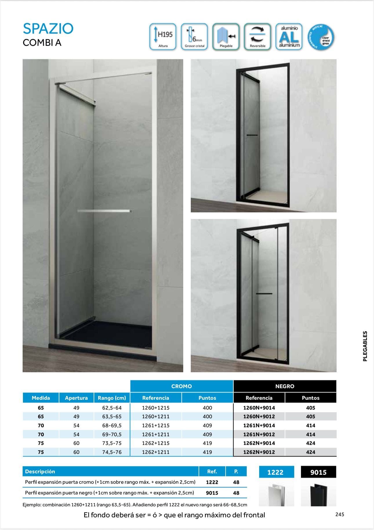 - Modelos abatibles, correderas o plegables, según el espacio disponible.